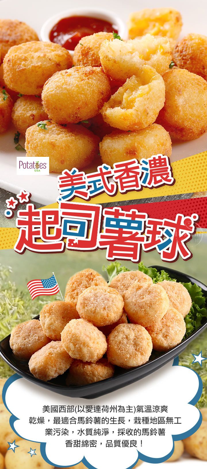 香氣濃郁的切達起司由新鮮馬鈴薯綿密包覆,外酥內鬆軟的絕佳口感,搭配切達起司的鹹香,美國薯製品第一大品牌,媲美速食店的經典風味!