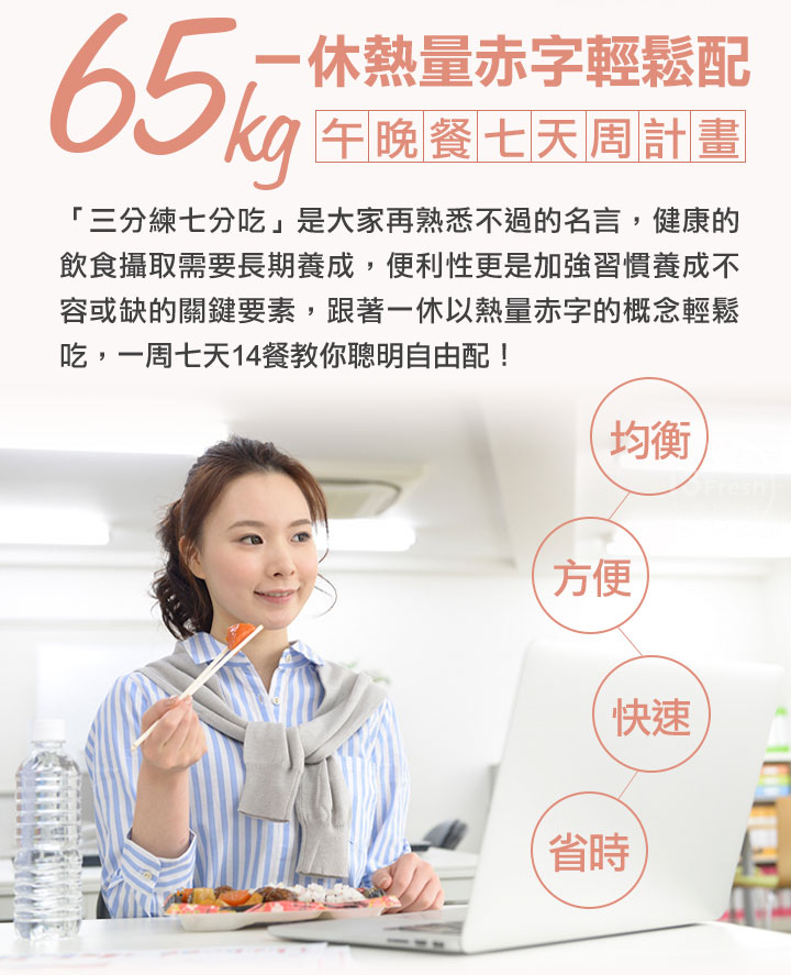 三分練七分吃是大家再熟悉不過的名言,健康的飲食攝取需要長期養成,便利性更是加強習慣養成不容或缺的關鍵要素,跟著一休七天14餐教你聰明輕鬆自由配!