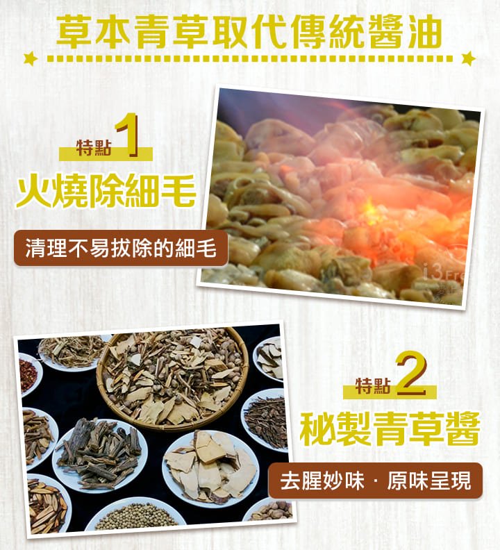 獨門青草醬滷製,甚至連醬油都沒有,吃起來入味香Q不死鹹,解凍即食超方便!