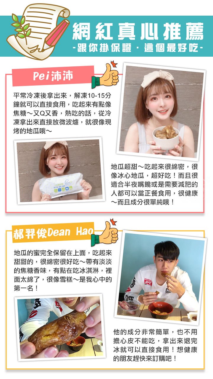 嚴選雲林契作特選台農57號品種地瓜,堅持完熟栽種確保地瓜香甜飽滿,特選小規格尺寸自然收成,經SGS檢驗農藥與重金屬均零驗出,讓您食用更安心!