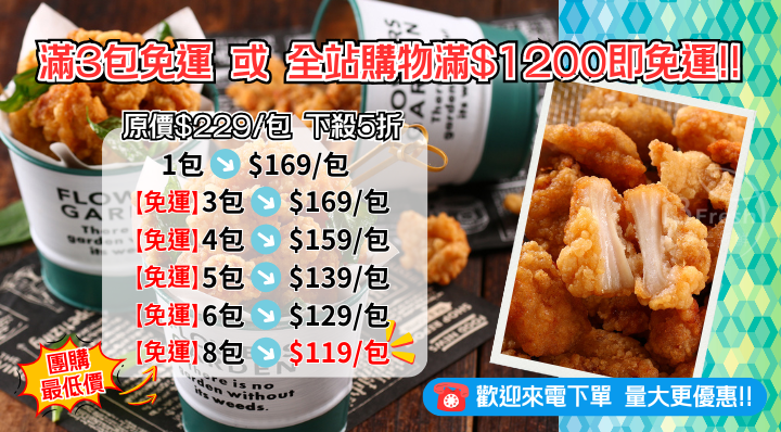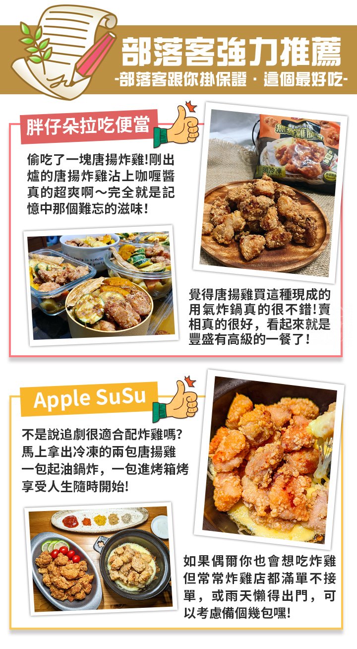 選用優質去骨雞腿原料以獨門醃料調製,吃來鮮嫩多汁香氣四溢,不論是派對美食或是下課後點心亦或是宵夜,都是你不容錯過的美味首選!