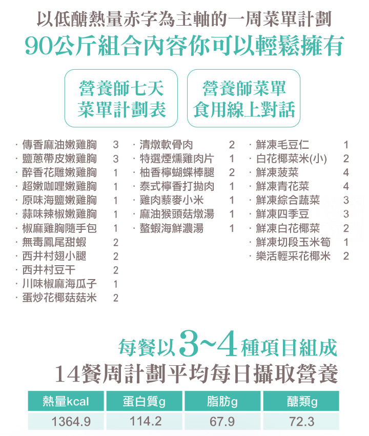 醣質OFF低醣攝取計劃PLUS,加強基礎計劃強度,方便更不失美味,今年就讓我們陪您一同堅持成功,跟著一休七天14餐教你聰明輕鬆吃!