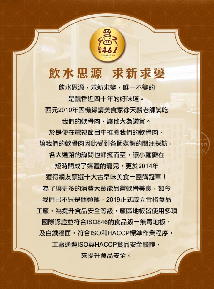 產品成份:豬肉、水、豬皮、醬油、蔥酥(蔥頭、棕櫚油)、冰糖、鹽、辣椒、花椒、八角、肉桂、小茴香、陳皮、肉豆蔻