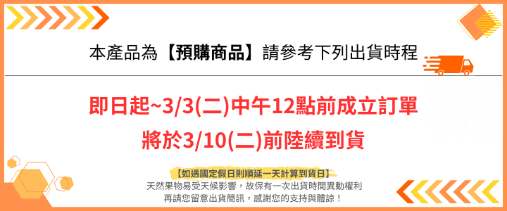 3. 訂單款項須於販售時間內完成付款,若未完成付款之訂單,將安排於下次出貨,造成不便敬請原諒。