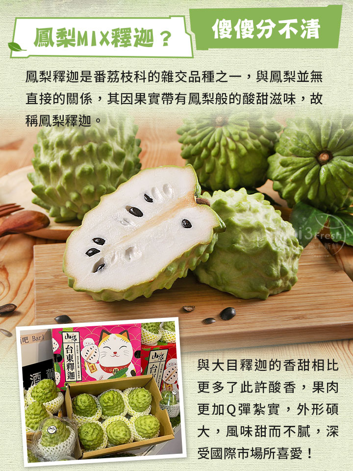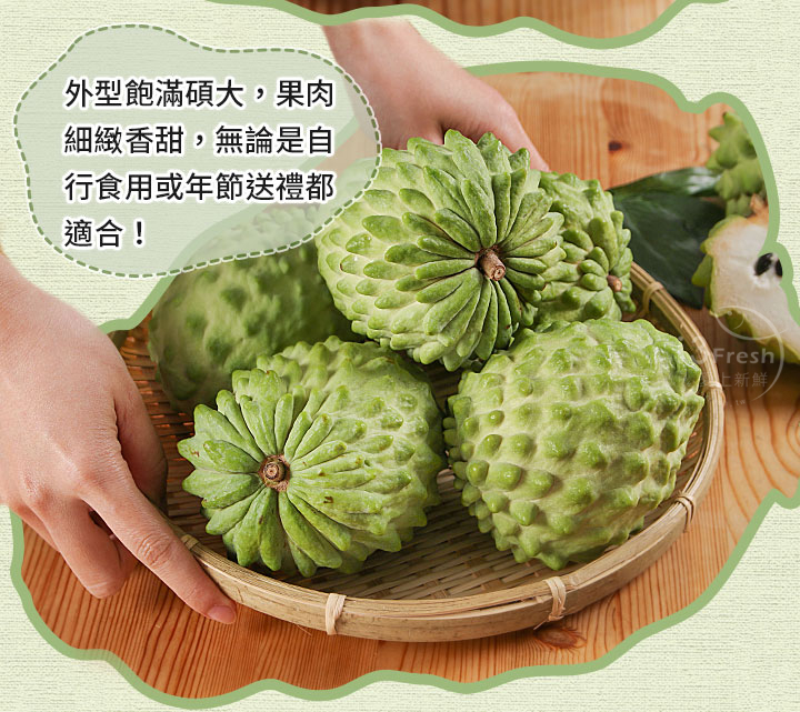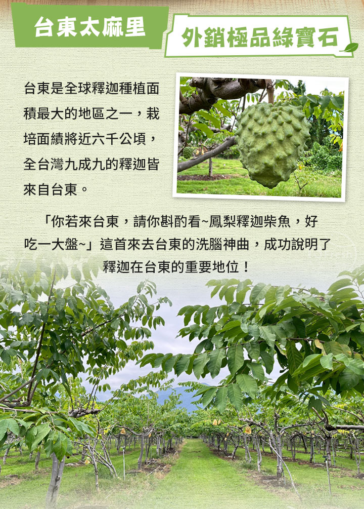 台東太麻里外銷極品綠寶石,外型飽滿碩大,果肉細緻香甜,風味甜而不膩帶有鳳梨般的果酸香,無論是自行食用或年節送禮都十分適合!