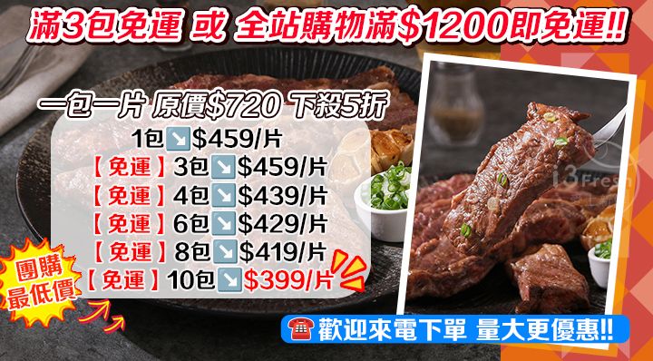 嚴選美國頂級無骨牛小排.天然的大理石油花是牛排愛好者的夢幻渴望.鮮嫩肉質單餐即食.在家也能擁有勞斯萊斯級的極致享受!