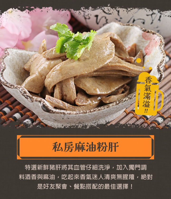 產品成分:豬肝(來源:台灣)、醬油膏、水、二砂、料理米酒、黑麻油、香油、薑粉、味醂(糯米.蓬萊米.酒麴.純米釀料理酒.釀造醣類.發酵調味料)