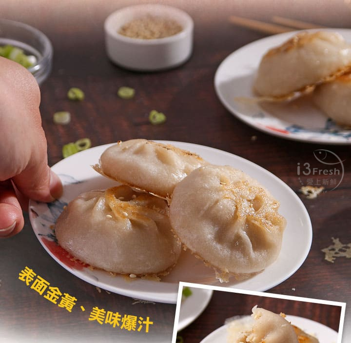 5、 完成後生煎包表皮金黃,有湯汁會爆出來,內餡有美味湯汁。