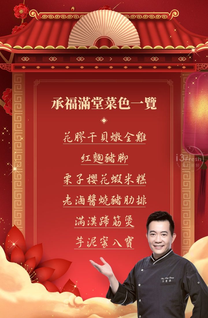 吳秉承師傅精選六菜!集合台灣經典大菜,豐盛食材美味上桌,是喜慶宴客過年的圍爐必備佳餚!好滋味絕對值得您一嚐!