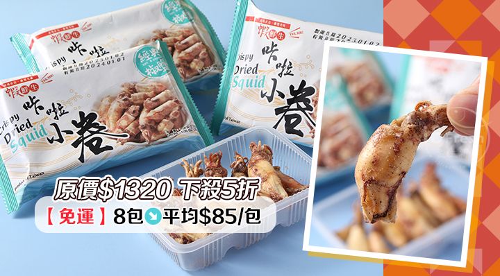 小卷經捕撈上岸後立即以低溫冷凍鎖住鮮度,並以專利技術烘焙,口感鮮甜不油膩,讓你一口接一口!