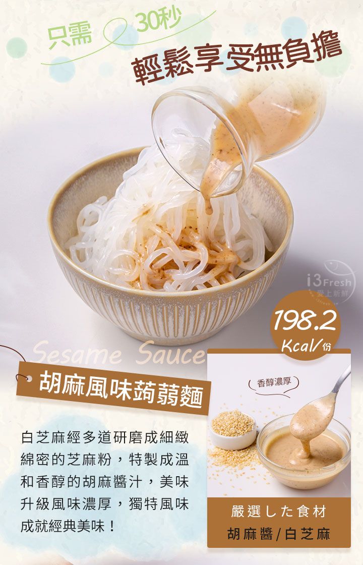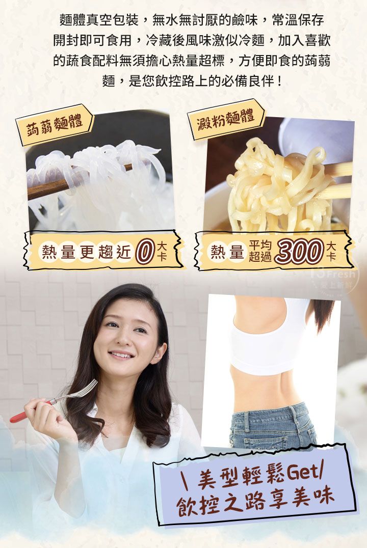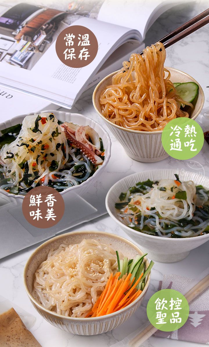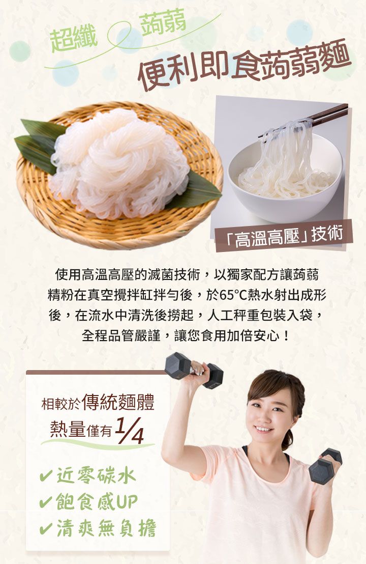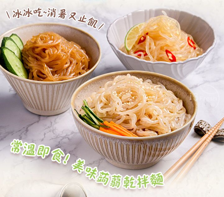 常溫保存,開袋即食,蒟蒻麵體熱量趨近於0大卡!搭配多種不同風味醬,美味再升級!無添加防腐劑,經高溫滅菌,可安心食用~