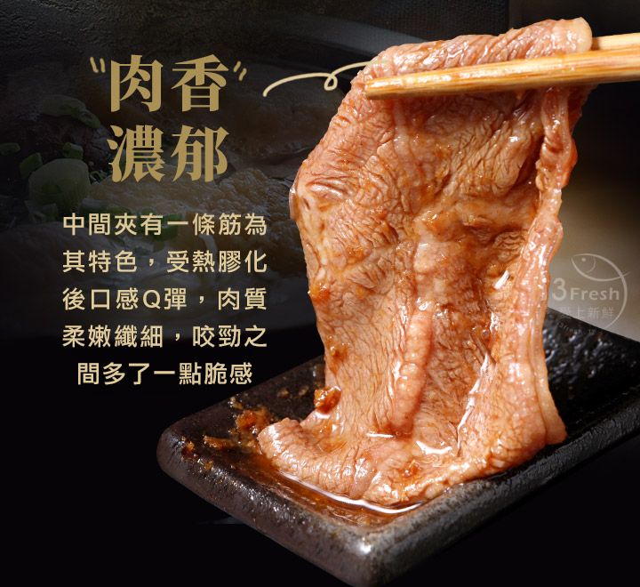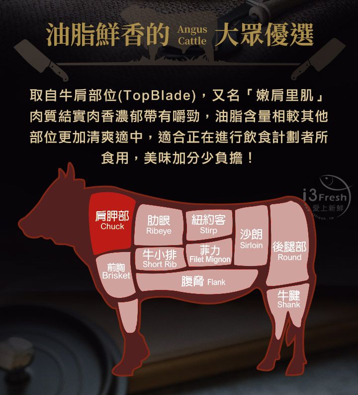來自美國猶他州的藍帶牛肉,其優良的品質及美味完全不負『藍帶』的美名。口感Q彈肉質柔嫩纖細,咬勁之間多了一點脆感,香煎、燒烤都適合,是經濟又實惠的選擇。