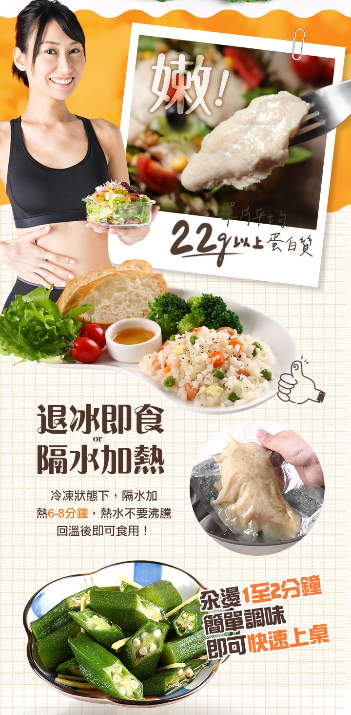 2.產品可置於冷藏室退冰後,隔水加熱4-6分鐘,熱水不要沸騰,回溫後即可食用。