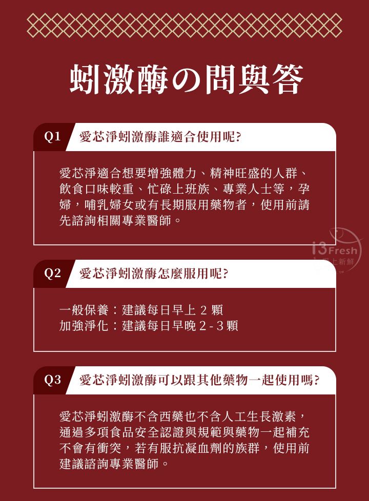 加強淨化 >> 每日早上3顆,搭配溫開水食用,飯前飯後皆可(多食無益)。