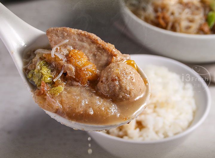 產品成分:水、鮭魚頭(鮭魚頭、大豆油)、大白菜、芋頭(芋頭、大豆油)、油豆腐(水、非基因改造黃豆、大豆油、氯化鎂、脂肪酸甘油酯)、沙茶醬(大豆沙拉油、魚乾、南薑粉、蒜頭、椰子粉、蔥乾、芝麻、食鹽、赤尾青、辣椒粉、咖哩粉、胡椒)、小貢丸{豬肉(台灣)、高湯[水、豬骨(台灣)]、蔗糖、小麥蛋白、食鹽、大豆油、芝麻油、蒜頭、白胡椒粉}、炸豬皮[豬皮(台灣)、大豆油]、扁魚乾、蒜仁、蛋酥(蛋、大豆油)、金針花、冬蝦、胡椒粉[麩皮粉、麥芽糊精、綠辣椒、胡椒(11%)、玉米澱粉、辣椒、茶枝、八角、當歸(調味用)]