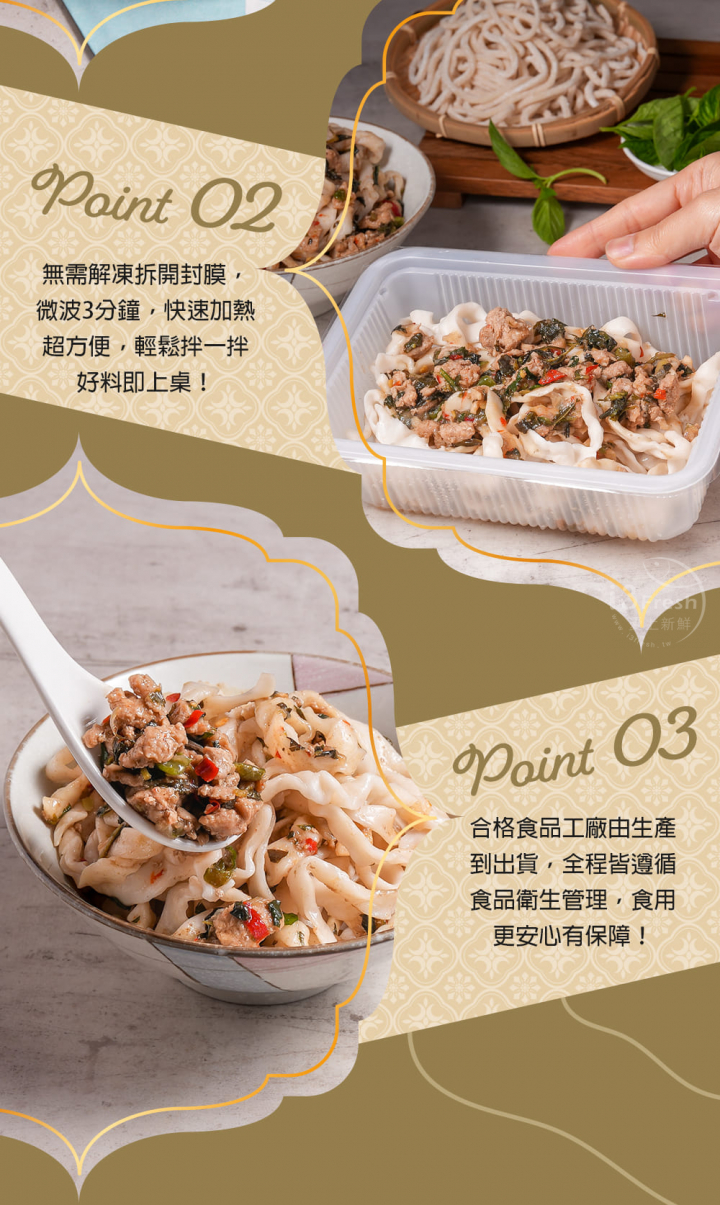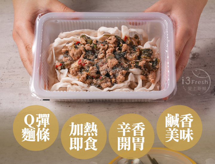麵條與醬汁完美融合,麵體Q彈不軟爛,鮮香微辣好開胃,口味濃郁不死鹹!無須解凍拆開封膜,微波3分鐘,輕鬆拌一拌好料即上桌~