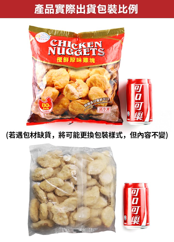 重量級優鮮原味雞塊,滿滿1kg包裝!含肉率高達80%,比一般速食店還好吃,鮮嫩多汁,大人小孩都愛吃!