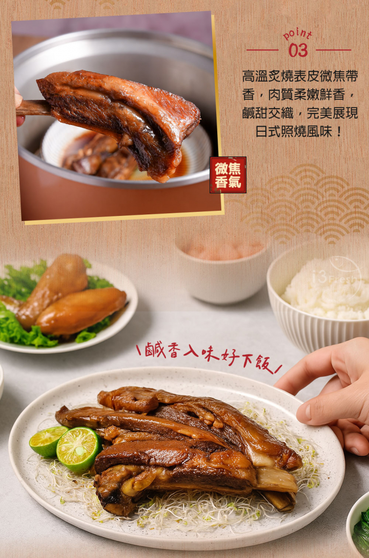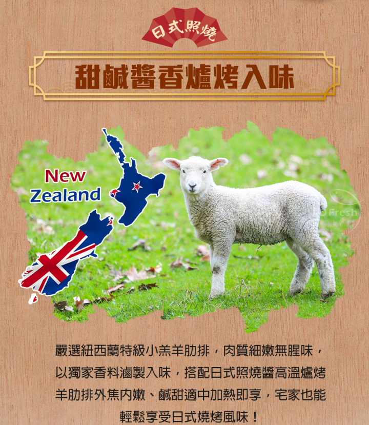 嚴選紐西蘭特級小羔羊肋排,肉質細嫩無腥味,以獨家香料滷製入味,搭配日式照燒醬高溫爐烤,羊肋排外焦內嫩、鹹甜適中加熱即享,宅在家也能輕鬆享受日式燒烤風味!