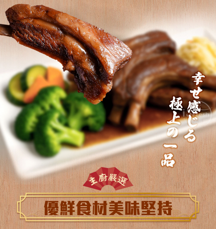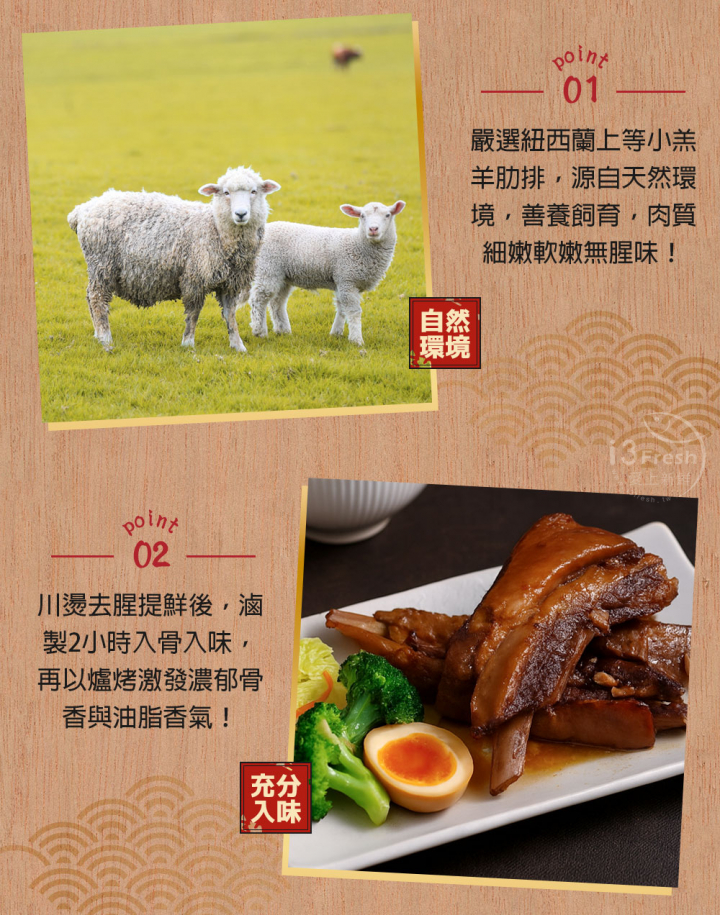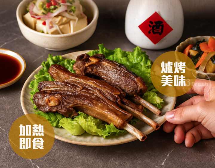 產品成份:紐西蘭羔羊排、水、金味王醬油、米酒、特砂(蔗糖)、紅冰糖(砂糖)、二砂糖、陳皮、花椒、桂皮、甘松、草果、三奈、丁香、砂仁、甘草、柴魚片(鰹魚、鯖魚)