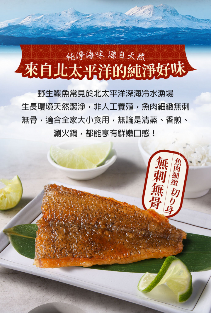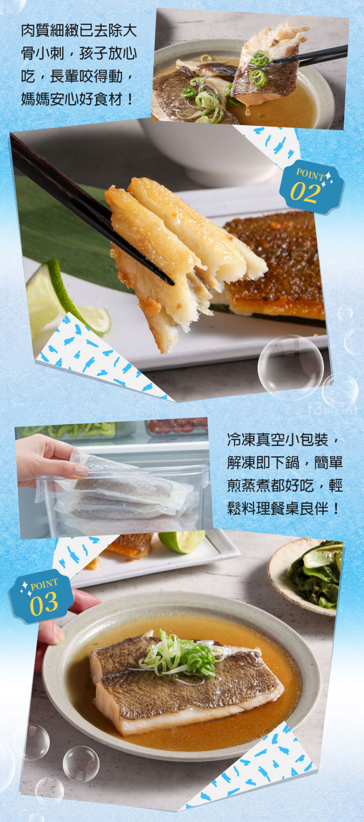 野生鰈魚常見於北太平洋深海冷水漁場,生長環境天然潔淨,非人工養殖,魚肉細緻無刺無骨,適合全家大小食用,無論是清蒸、香煎、涮火鍋,都能享有鮮嫩口感!