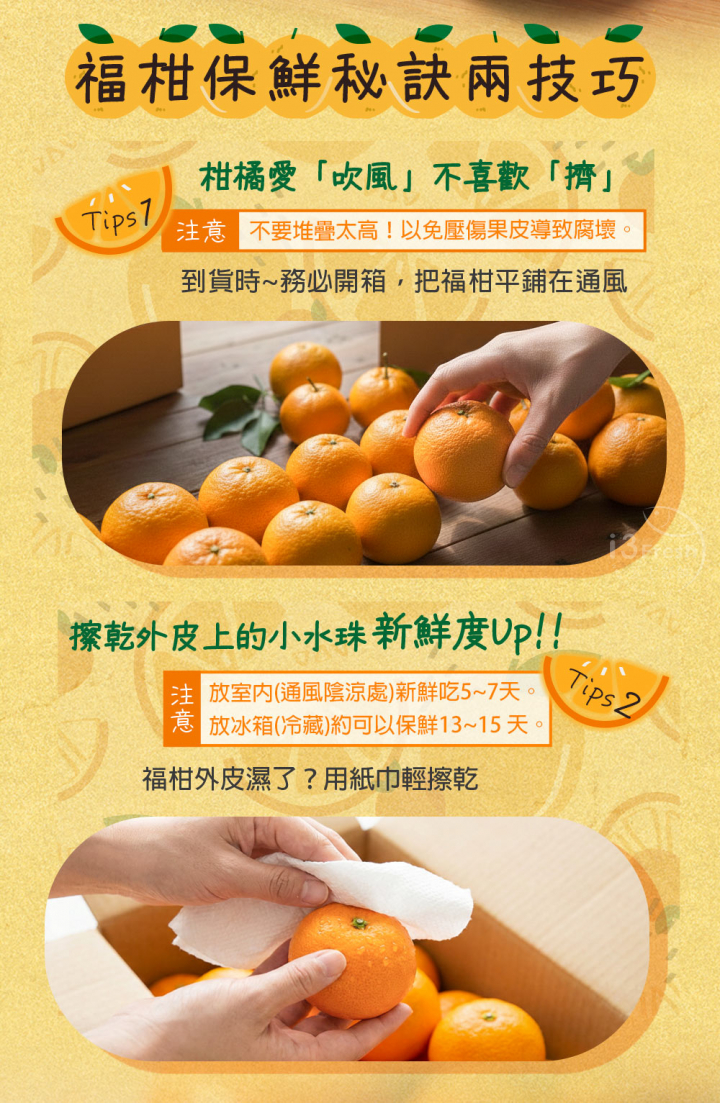 保存方式:1.平放在通風陰涼處,避免陽光直射。2.不要堆疊太高,以免壓傷果皮導致腐壞。3.若表皮略有水氣,可用紙巾輕輕擦乾。