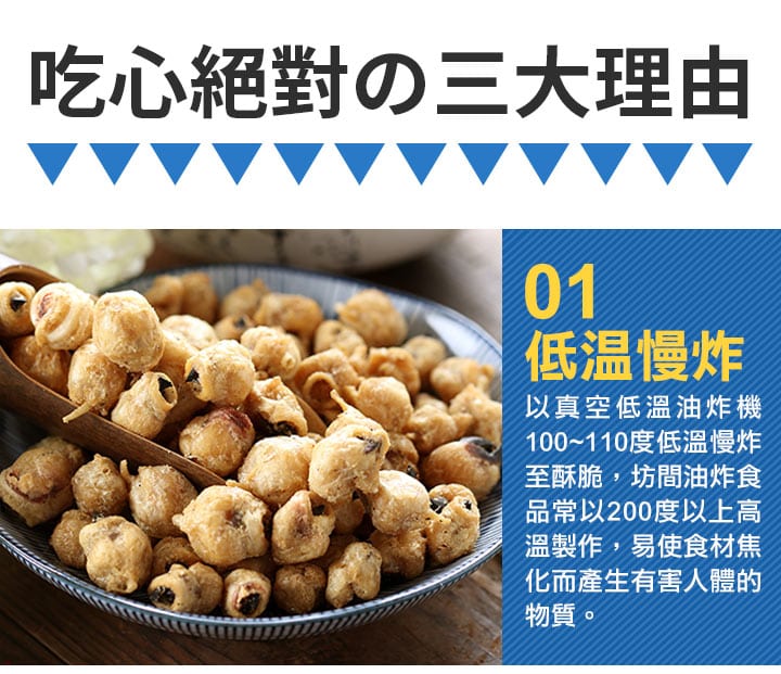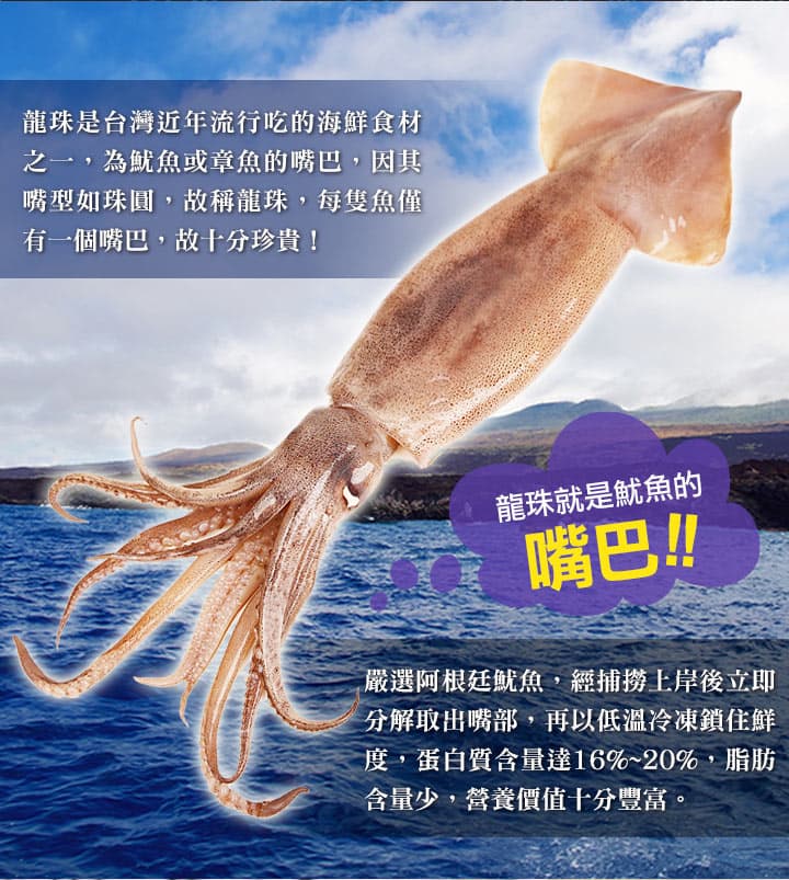 嚴選阿根廷魷魚,經捕撈上岸後立即分解取出嘴部,以低溫冷凍鎖住鮮度,再以專利輕烘焙技術製作,口感鮮甜不油膩,讓你一口接一口!