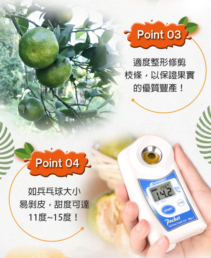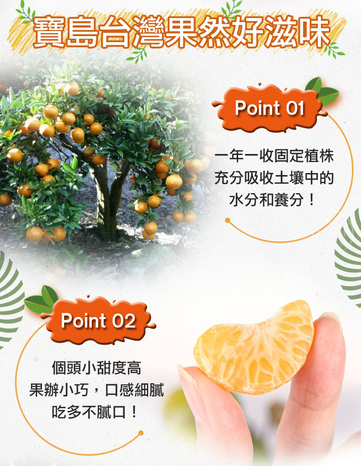 僅一般橘子大小的1/3,一年一收,個頭小巧,果實味道甜蜜如同糖般故得名,口感細緻不膩口,是年節送禮的新寵兒!