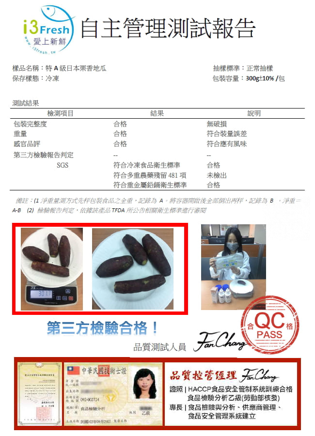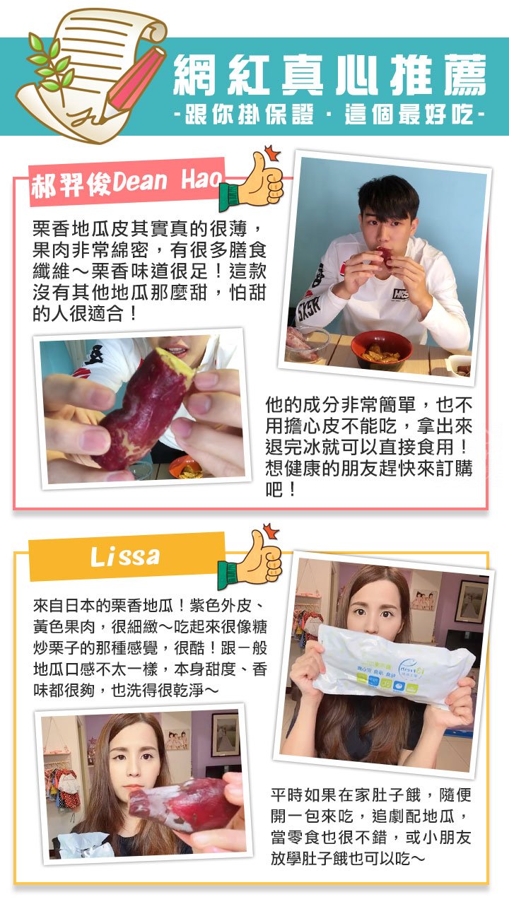 商品重量:300g+-10% (約3~6條,隨地瓜大小放置,以實際重量為主)